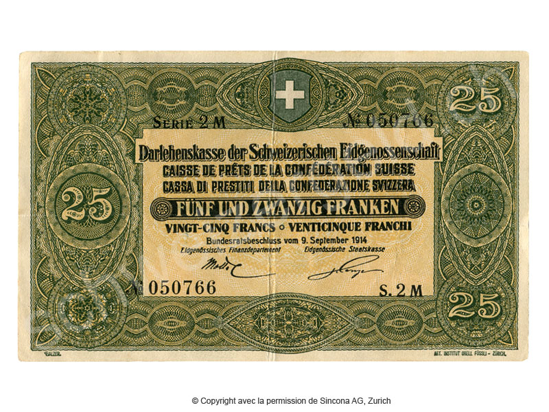 Billets de banque: Caisse Fédérale / de prêts, 25 francs, Caisse de prêts