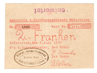 Billets de banque: Argent de nécessité Hofstetten, 2 francs