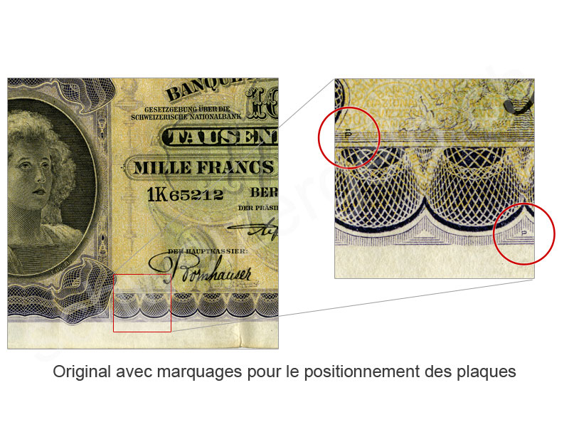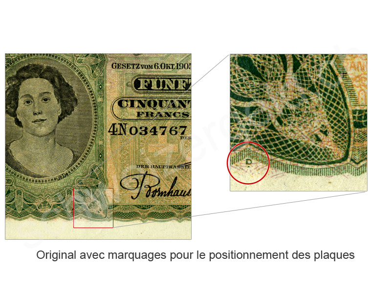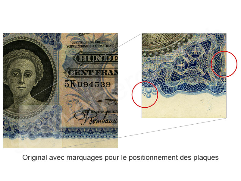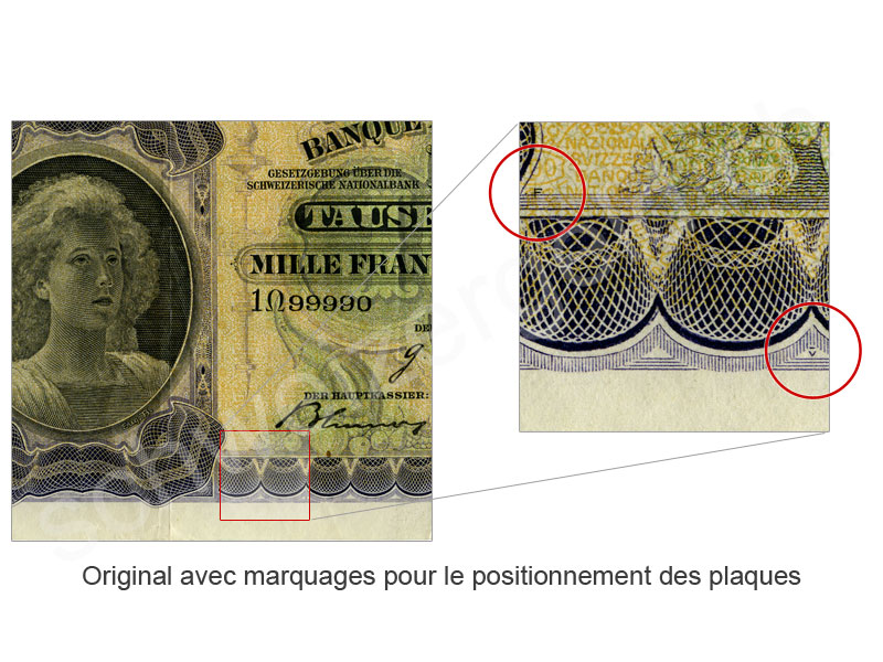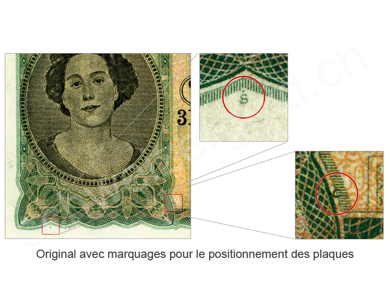 Spécificité: signes pour le positionnement des plaques d'impression manquantes, série 1G uniquement avec la date 16.06.31