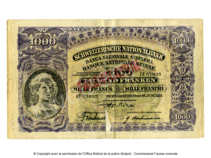 1000 francs, falsification, 1931
