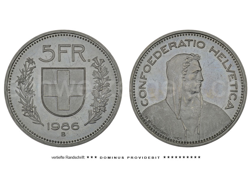 Bundesmünzen: 5 Franken, Jahrgänge 1986 bis 1993
