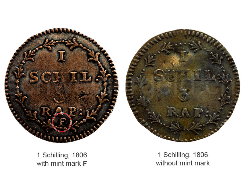 1 Schilling, 3 Rappen