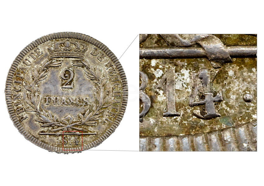 2 Francs (Ag): The number 4 is minted over a 3.