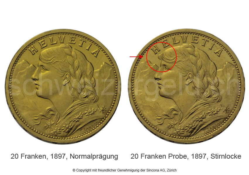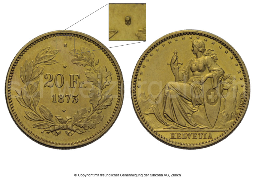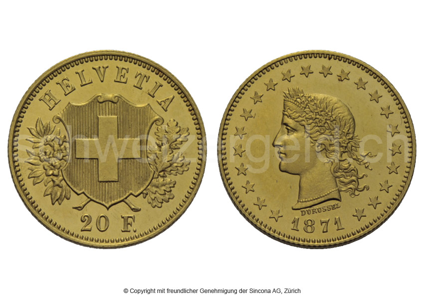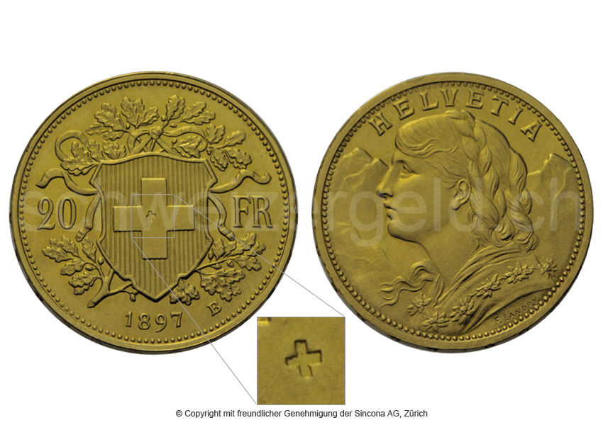 Motiv: Helvetiakopf (Vreneli) gleichstehend