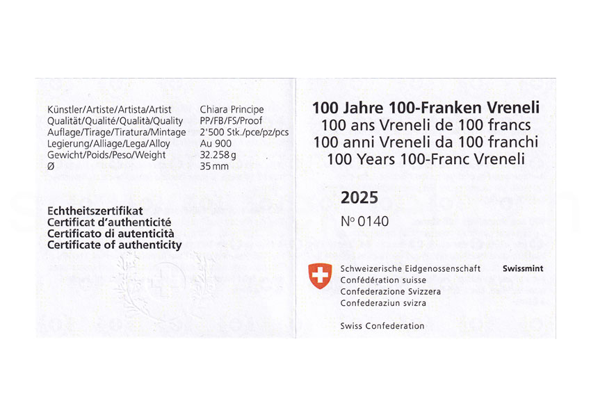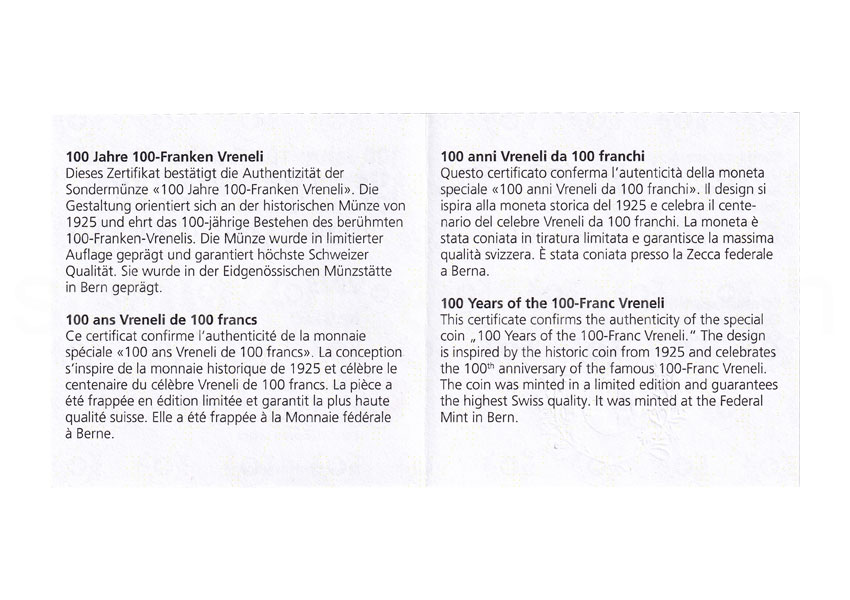 100 Years 100-Franc Vreneli